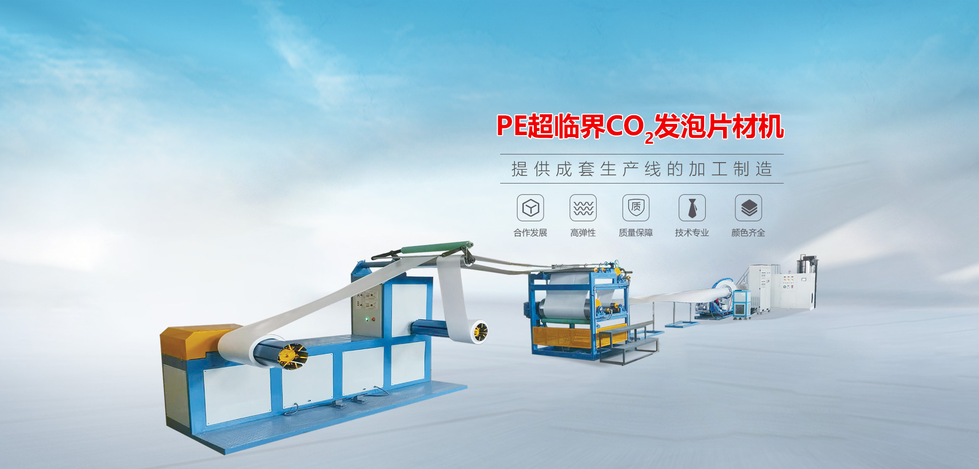 主要生产PE/PS/PP/TPU/PLA发泡片材生产线,EVA发泡条/密封条生产线,CO2/N2超临界流体加注机,TPU/EVA发泡颗粒(爆米花)生产线,XPS装饰线条生产线,以及多种实验室用的实验机系列设备......