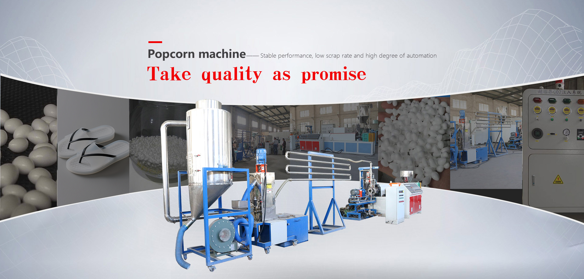 It mainly produces PE/PS/PP/TPU/PLA foam sheet production line, EVA foam strip/sealing strip production line, CO2/N2supercritical fluid filling machine, TPU/EVA foam particle (popcorn) production line, XPS decorative line production line, and a variety of laboratory testing machine series equipment......